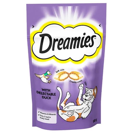 DREAMIES™ cat treats are packed full of things cats love. Share moments with your feline friend with these dual-texture treats with an enticingly crunchy outside and a soft inside. DREAMIES™ with Delectable Duck contains vitamins and minerals, at just 2 calories per treat. So go on, give the bag a shake and watch your cat come running!