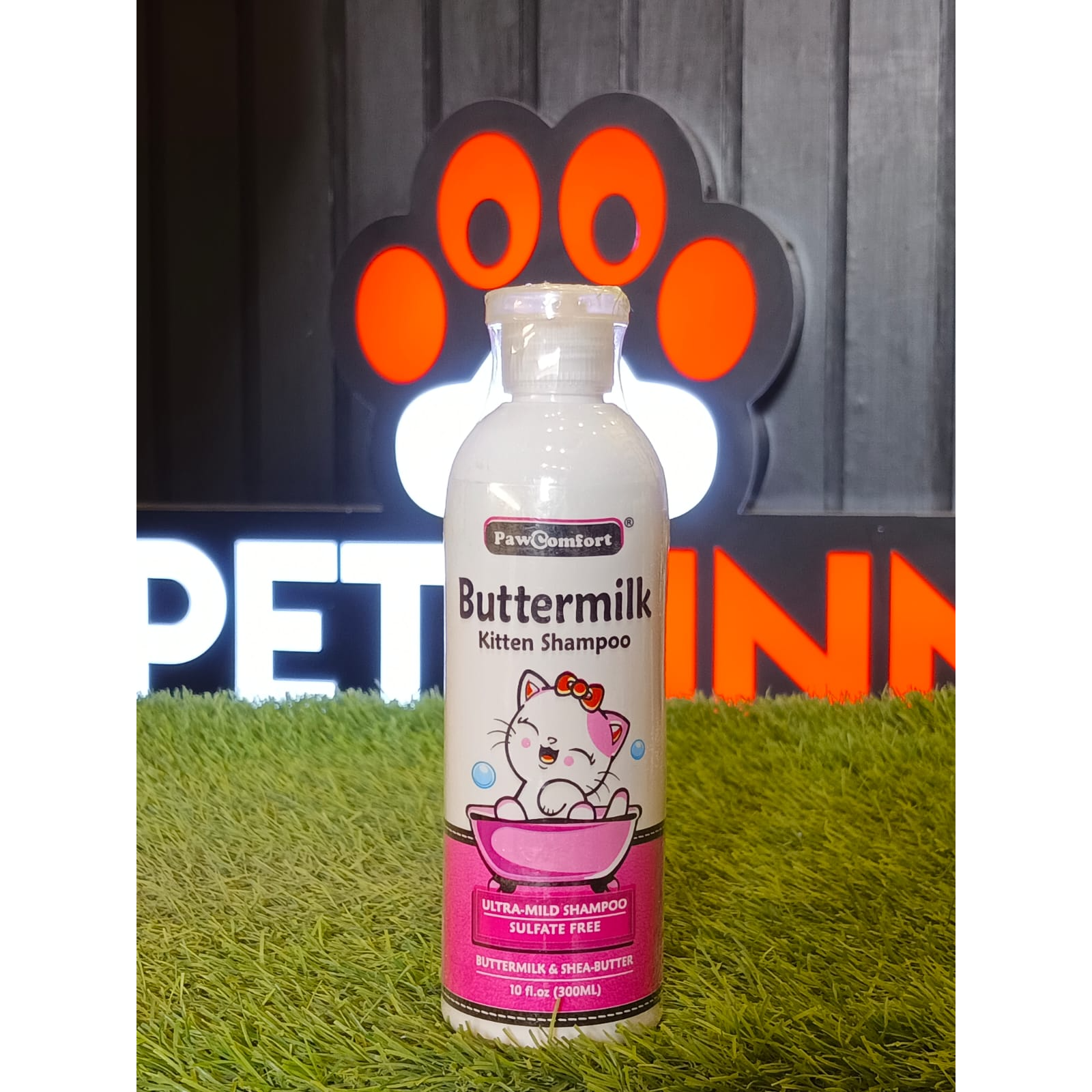 Introducing Paw Comfort Butter Milk Kitten Shampoo in a 300ml bottle. Treat your adorable kitten to a luxurious bath experience with our sulfate-free formula enriched with buttermilk and shea butter. Gentle yet effective, it cleanses and nourishes your kitten’s sensitive skin, leaving their coat healthier and shinier.