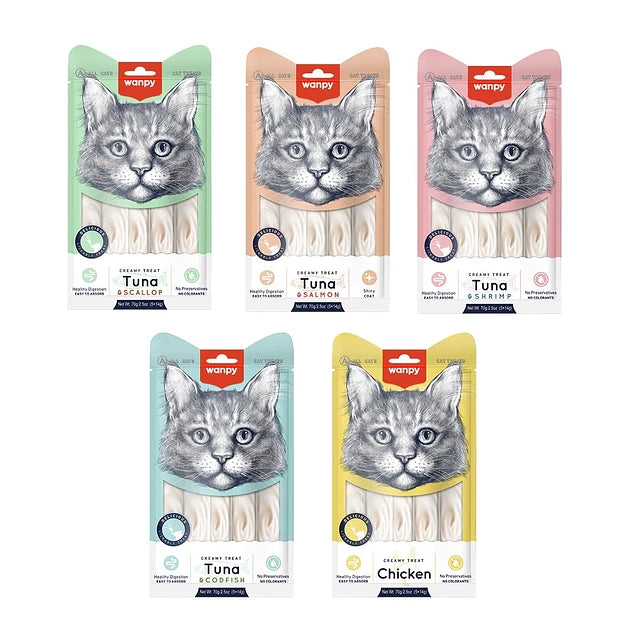 Indulge in a delicious and nutritious treat for your furry friend with Wanpy Creamy Treat. With 5 flavorful options, each bite is full of important vitamins and minerals for your pet's health. Give them a taste they'll love while providing beneficial nutrients.